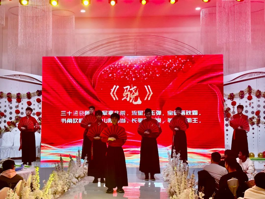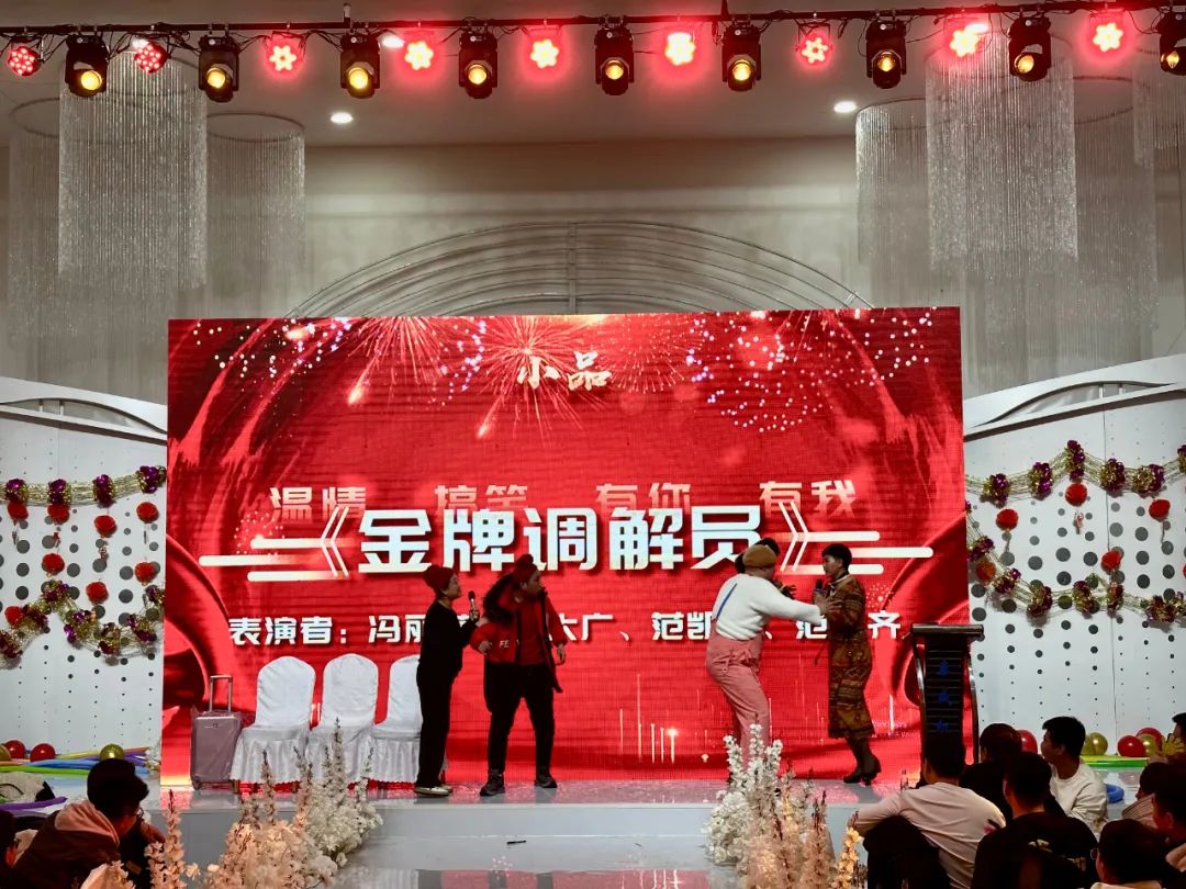 薈萃星光,觥籌熠熠,隨著頒獎(jiǎng)典禮的結(jié)束,晚會(huì)在瀟灑的開場舞《驍》中正式拉開帷幕,隨后,公司各部門工作人員為大家?guī)砹宋乃囇莩?,歌曲演唱《笨小孩》、《海芋戀》、《著魔》,黑管?dú)奏《上海灘》,舞蹈表演《科目三》、《桃花朵朵開》,小品節(jié)目《四大才子招親》、《金牌調(diào)解員》,大合唱《壯志在我胸》,一段段精彩紛呈的節(jié)目收獲了臺(tái)下觀眾源源不斷的掌聲與歡呼聲,展現(xiàn)了泰威人蓬勃向上的青春風(fēng)采。其中,小品《金牌調(diào)解員》的演員們,憑借著精湛、搞笑的演技,得到了全場觀眾們的認(rèn)可,小品被評(píng)為全場最佳節(jié)目。